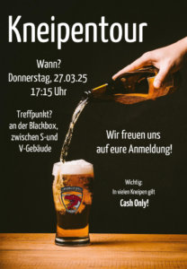 Am Donnerstag, den 27.03.2025, findet unsere traditionelle Kneipentour statt!